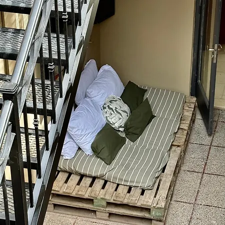 Gästerna kan koppla av på en terrass på vandrarhemmet. - ❓